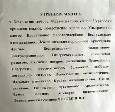 | всегда готов ! (с) :-)Добавлено (21 Авг 2009, 10:11:25) --------------------------------------------- Разных табличек на дверях повидал я. Но надпись "Осторожно, дверь!" убила наповал. Добавлено (21 Авг 2009, 10:15:30) --------------------------------------------- Украинские вампиры настолько суровые, что едят сало с чесноком.